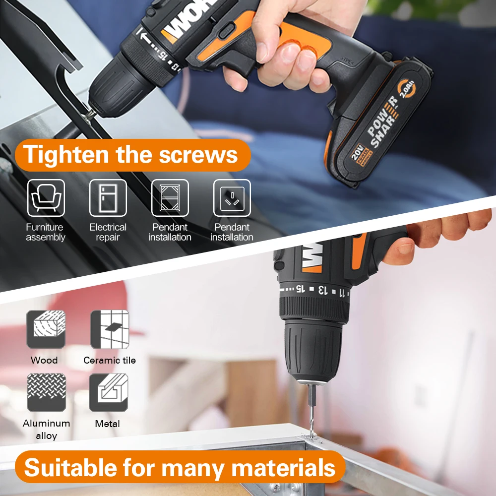Product Name: Worx 20V Cordless Drill Driver Electric Drill WX101.1 Impact Drill Screwdrivers Rechargeable Powershare Household Power Tools